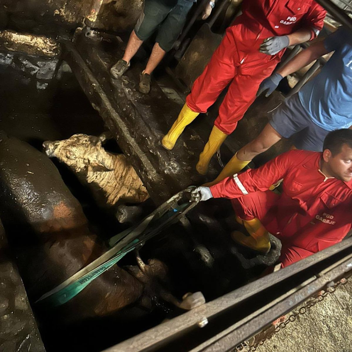 Gasilci PGD Gabrje pri Dobovi so s hitrim odzivom in s tehničnim posegom ter pomočjo domačinov s kmetijsko mehanizacijo iz jame uspešno dvignili in rešili vse tri krave. Na koncu so namestili še novo rešetko.