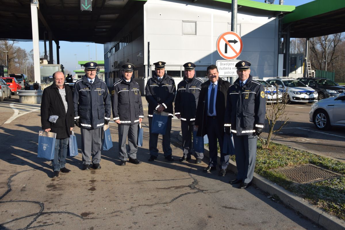 Na mostu čez reko Muro v Petišovcih so spet odpirali šampanjce in žrtvovali policijsko pokrivalo.