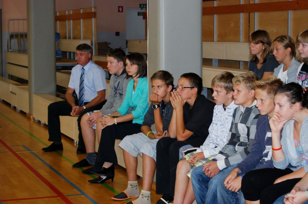 Učenci in učitelji smo se ob pol osmih zbrali v šolski telovadnici ter po uradnem začetku z državno himno in s posnetkom nagovora predsednika Danila Türka učencem, ki je v vzpodbudnem govoru poleg pomembnosti pridobivanja znanja poudaril tako spoštovanje narave in ljudi, kot tudi nujnost medsebojnega sodelovanja in vzajemne pomoči, prisluhnili kratkemu kulturnemu programu s po dvema recitacijama in zapetima pesmima ob spremljavi kitare, za kar je skupaj z dvema Evama, Manco in Anjo poskrbela učiteljica Jelka Gregorčič Pintar. Učenci so radovedno pričakali nagovor novega gospoda ravnatelja mag. Vincenca Freceta, nato pa z razredniki izvedli še dve uri, na katerih so jim bile predstavljene organizacijske novosti šolskega dela (zlasti spremembe v hišnem redu). Sledil je pouk po urniku.