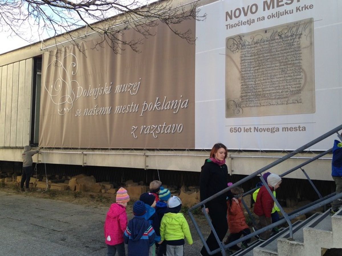 Otroci iz skupine Mehurčkov pa so se prav tako odpravili v mesto prav na dan 650 - letnice Novega mesta. Po ulici Breg so se odpravili proti cerkvi na Kapitlju ter odšli na ogled Dolenjskega muzeja, ki je imel dan odprtih vrat. Ogledali so si, kakšno je bilo življenje v starih časih v Novem mestu: videli so, kako so bili oblečeni športniki, policisti, tekači in kakšna je bila moda v tistih časih. Gospa jim je pokazala tudi grb Novega mesta – ustanovitelja Rudolfa ter povedala nekaj besed o njem. Videli so tudi razne posode, ki so jih uporabljali za prinašanje vode. Otroci so z zanimanjem poslušali in zagotovo kaj novega izvedeli o Novem mestu.