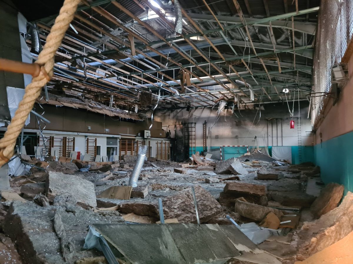 Zagorela streha telovadnice na Mostu na Soči: Pouk odpovedan, škoda ogromna