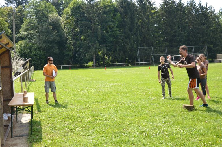 Štiri ekipe so se pomerile v osmih različnih spretnostnih igrah, in sicer v vožnji slaloma s samokolnico, v medsebojnem podajanju surovih jajc, v lokostrelstvu, v podiranju tarč z žogico, v prekladanju zabojev z deskami, v brcanju starih čevljev v košaro, v pandolu ter v miselnem testu oziroma reševanju vprašalnika.