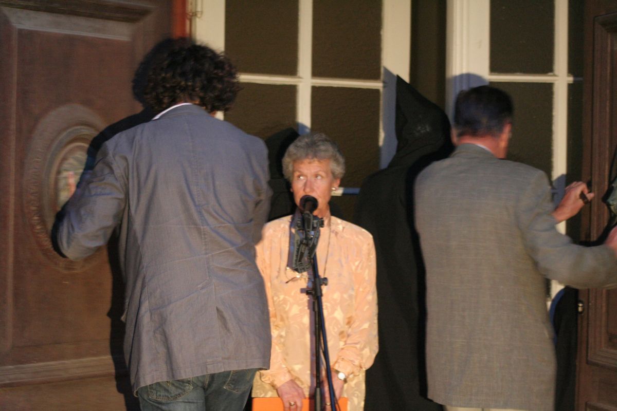 Staša Vovk je na vhodu v stavbo tako na kratko opisala ključne dogodke v zgodovini doma, spremljevalni zbor, ki je predstavljal vest meščanov, največkrat slabo, pa je te dogodke pokomentiral z glasnim odobravanjem ali negodovanjem.