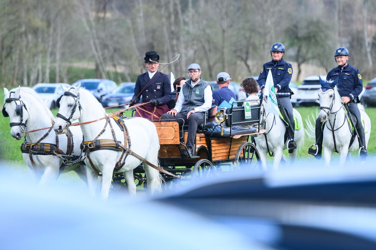 Zmagovita Prevca v domačo vas pripeljali v policijski vpregi lipicancev