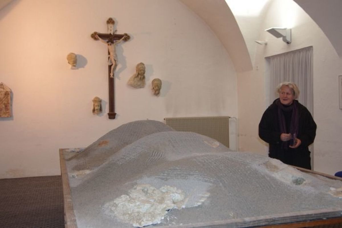Nova vrata so sedaj še zakrita, a kakšna bodo, so že lahko videli obiskovalci sinočnje priložnostne razstave z naslovom Arheologija smrti in življenja Mirsada Begića (kustos razstave je Tone Seifert) v škofijski dvorani. Prikazuje tako podobo celote kot detajle svetoletnih bronastih vrat, ter umetnikove risarske zasnutke zanje, pa tudi instalacijo iz peska, ki nakazuje mehkobo dolenjske pokrajine, s posameznimi fragmenti z vrat.