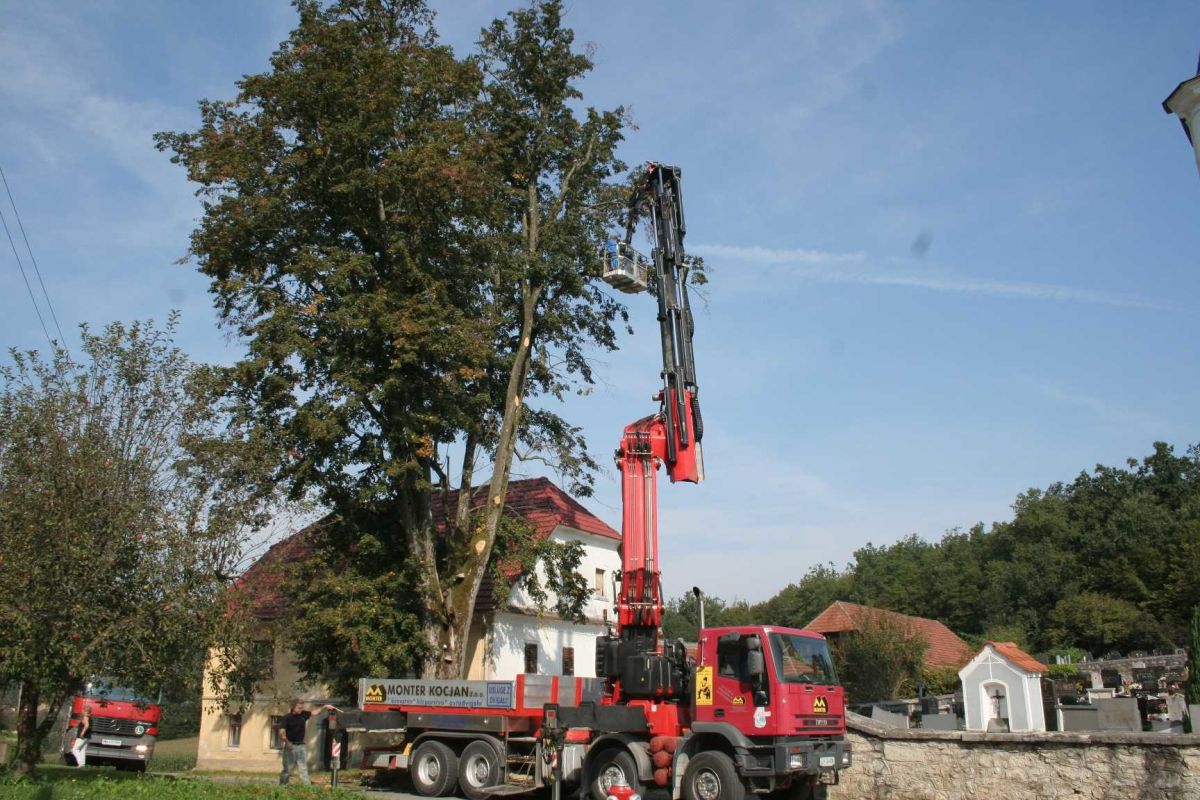 Zahtevno in več urno delo je spremljala tudi predsednica krajevne skupnosti Mirna Barica Kraljevski, ki je pojasnila, da so pritožbe krajanov predvsem zaradi strahu, da bodo suhe veje poškodovale nagrobne spomenike, deževale že nekaj let, zato so se najprej obrnili na zavod. Po ogledu so jim svetovali, da lipo posekajo in zasadijo novo ali pa to obrežejo in s tem zmanjšajo tveganje. Svet KS se je odločil za slednje, saj lipa daje tudi pečat kraju in pokopališču.