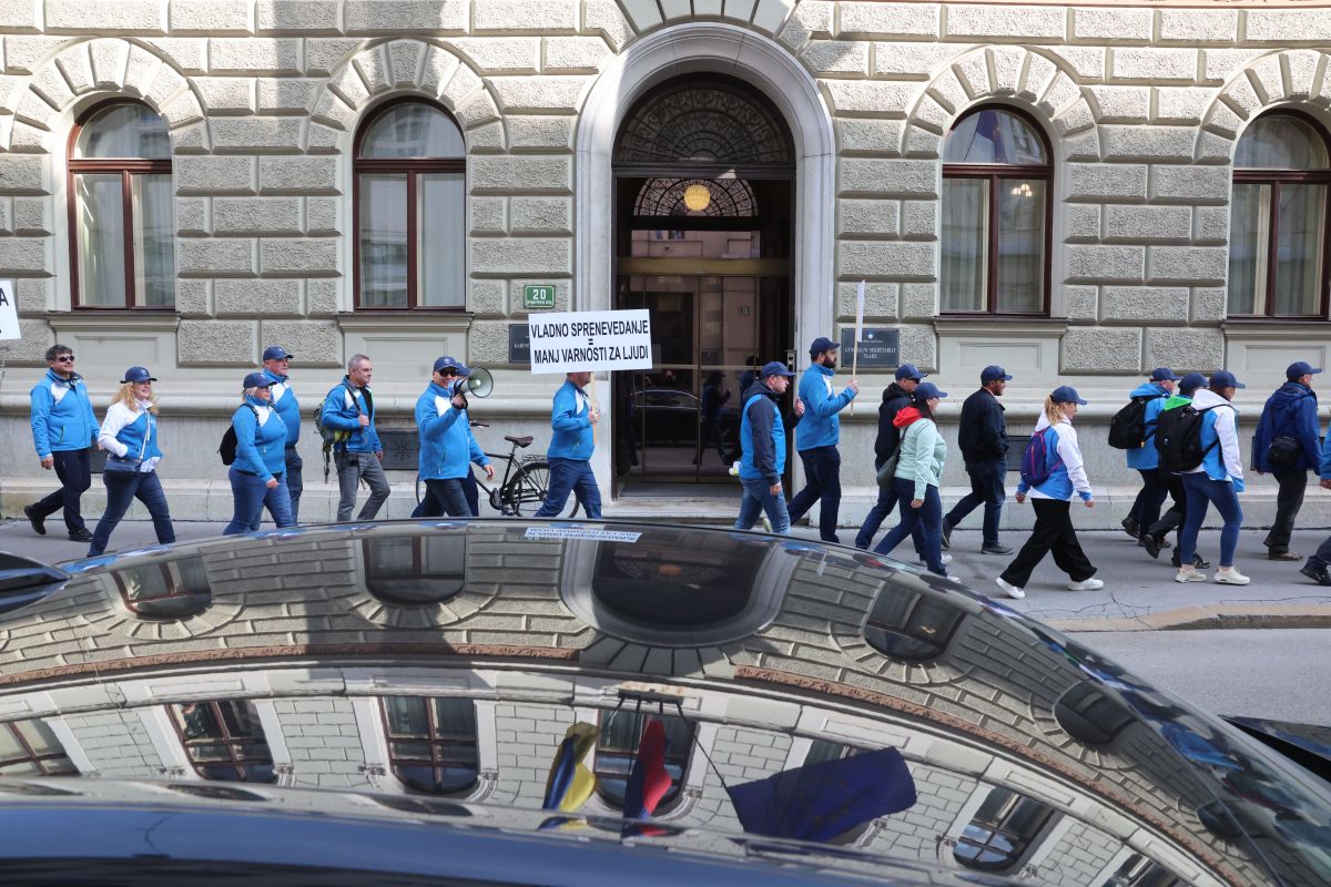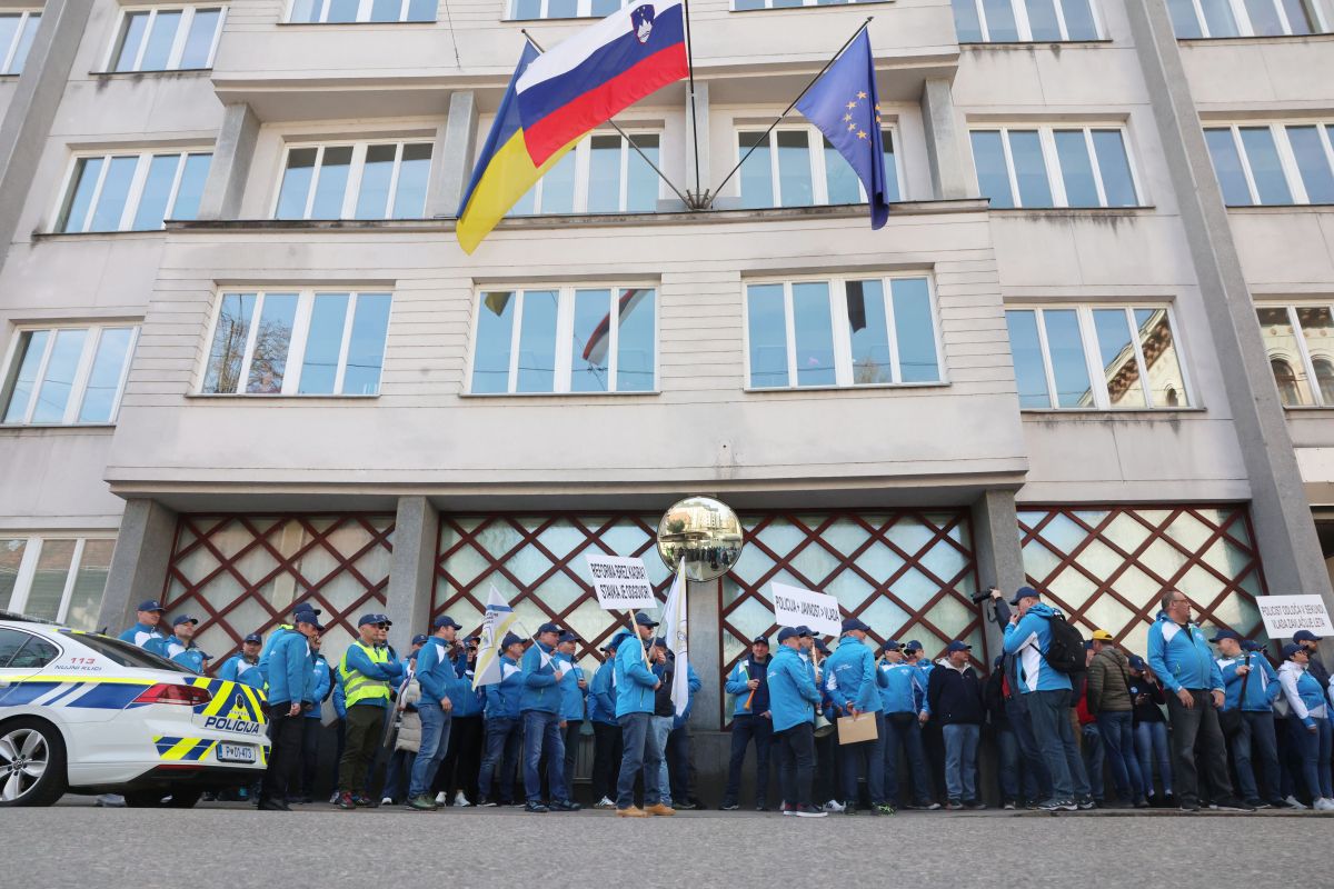 Del policistov je s protestom pred vladno stavbo začel stavko, ki so jo v Policijskem sindikatu Slovenije napovedovali dlje časa.