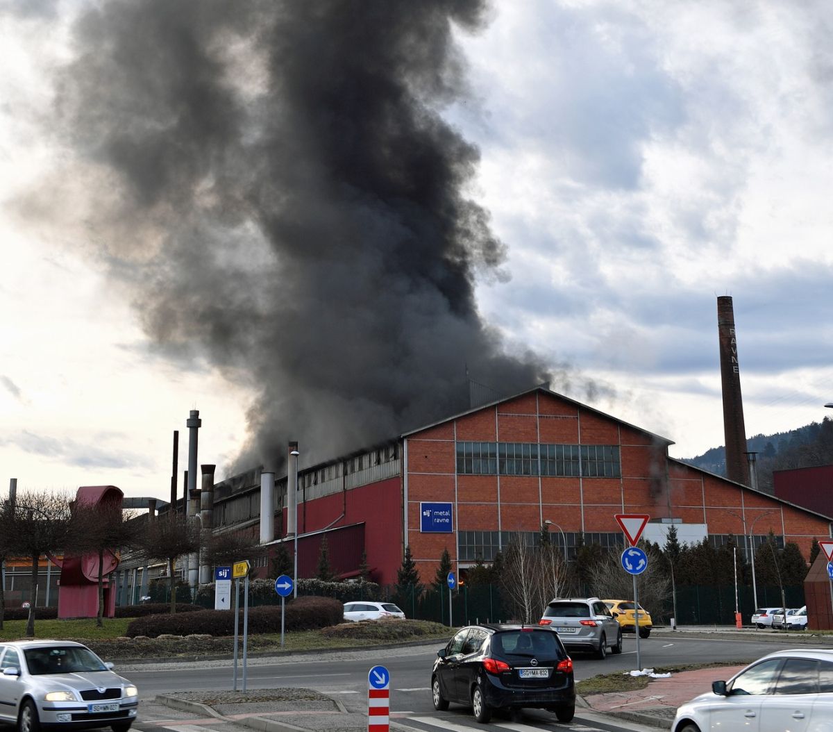 Popoldne je zagorelo v podjetju SIJ Metal Ravne. Iz ene od stavb se je valil gost črn dim.