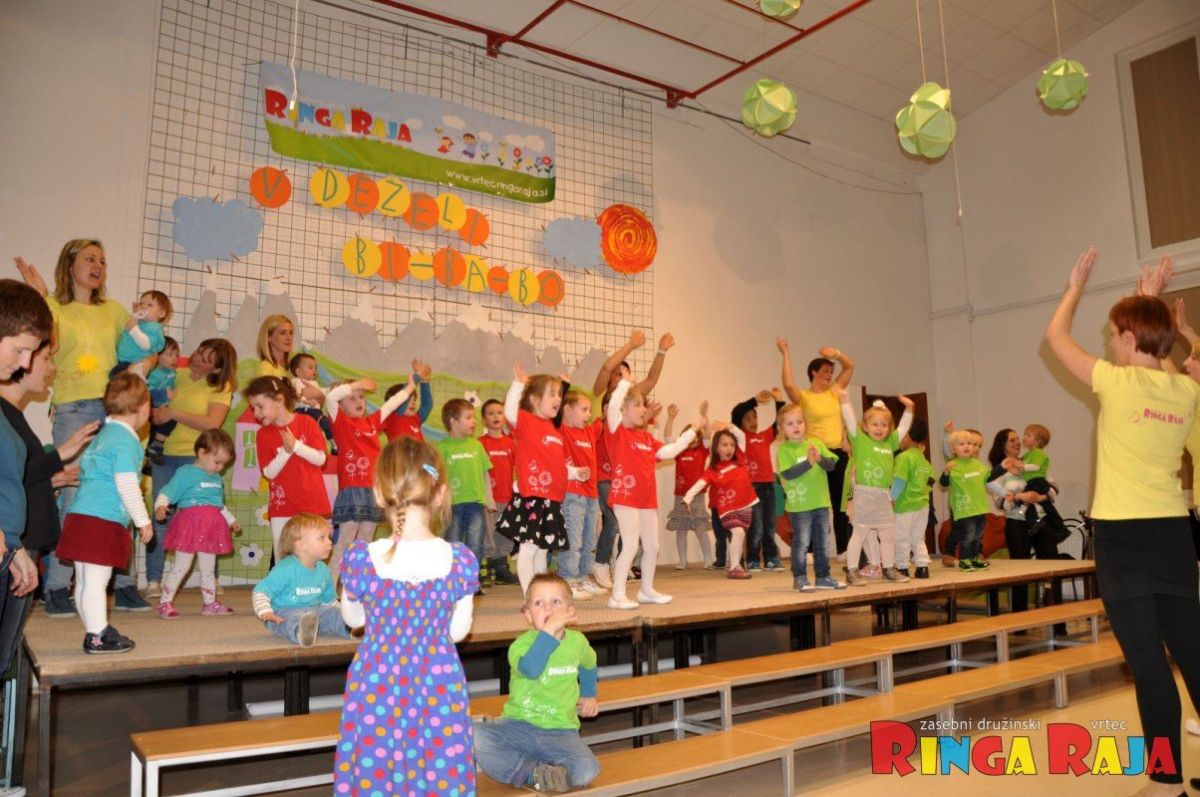 Tudi letos letos smo otroci in zaposleni Zasebnega družinskega vrtca Ringa raja pripravili dan družin. Rdeča nit letošnje prireditve je bila ljubezen in spoštljiv odnos do narave in ljudi. Otroci so pripravili avtorsko zgodbo Dežela Bi-ba-bo, iz risb, ki so jih narisali, pa je nastala tudi istoimenska risanka. To so si lahko naše družine na prireditvi tudi ogledale. Prireditev smo pospremili s petjem, plesom in iskrenim veseljem, za kar smo prejeli številne pohvale, domačim pa smo podarili tudi darilca, ki smo jih izdelali sami iz naravnih materialov, hkrati pa so le-ta okolju prijazna.