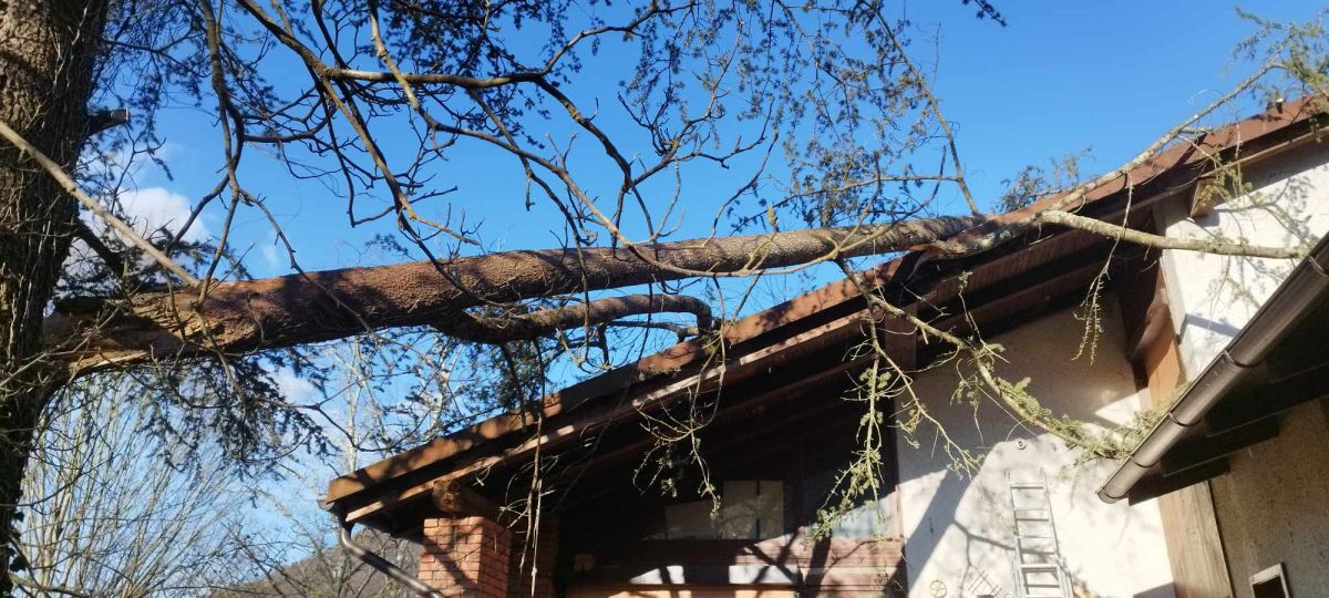 V Cerknem na hišo padlo drevo, v Kobaridu težave zaradi azbesta