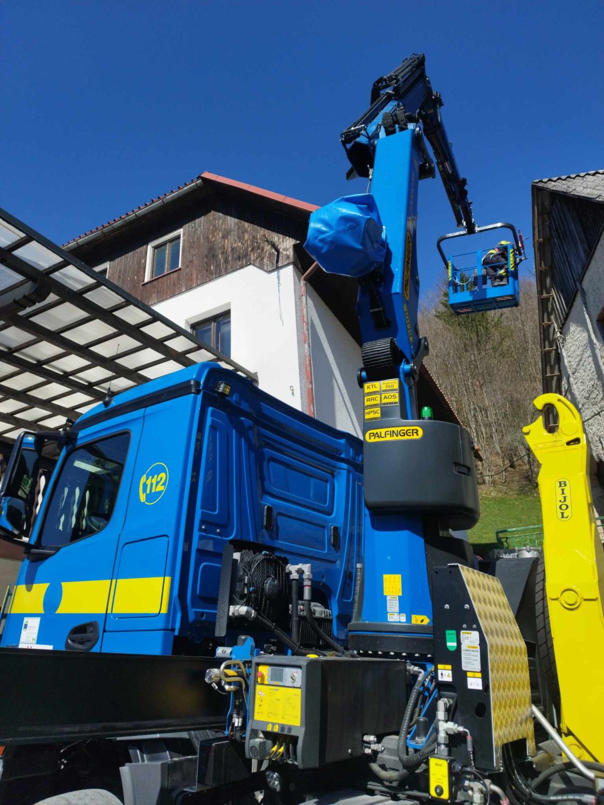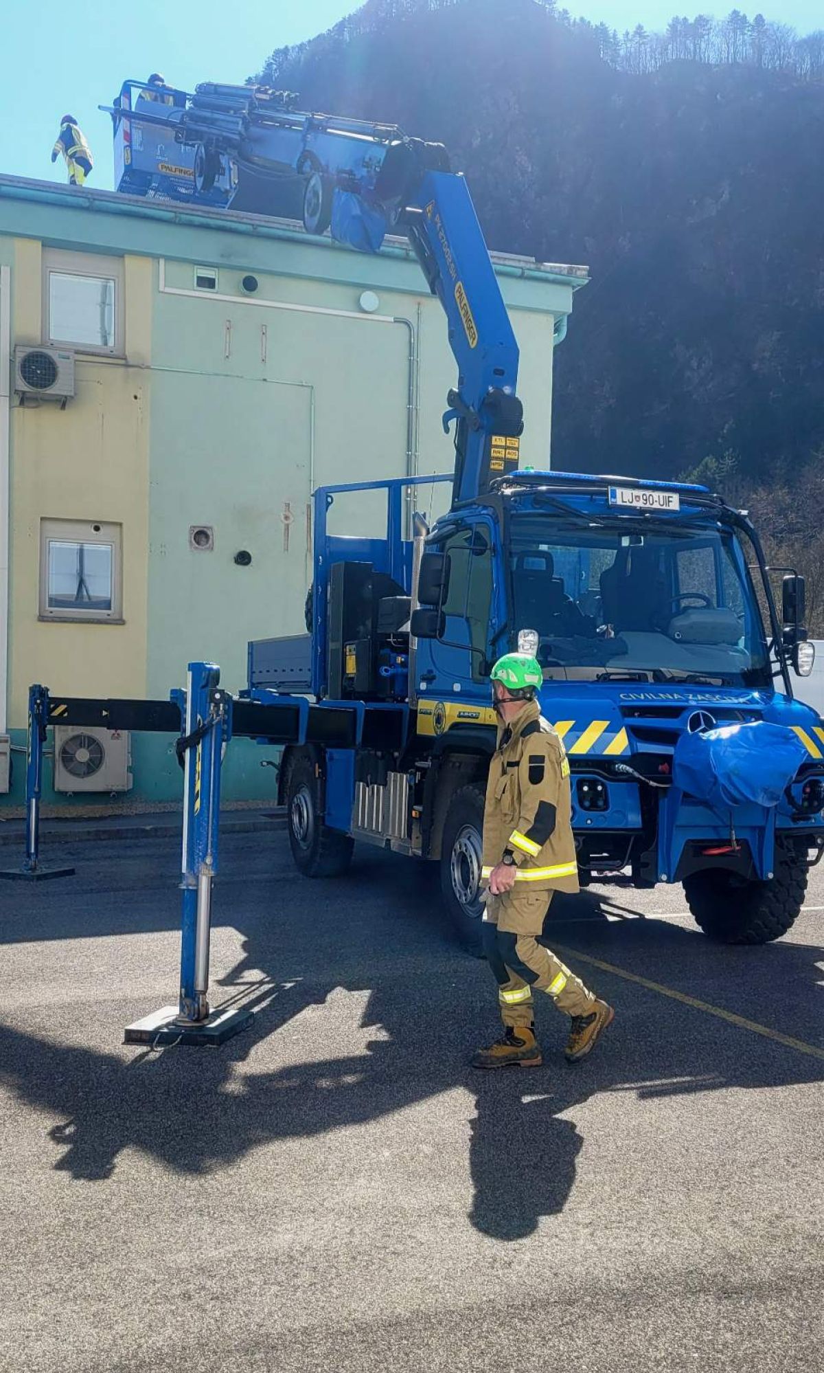 Bovškim gasilcem so na pomoč priskočili kobariški in tolminski kolegi ter tudi ekipa regijske tehnično reševalne enote civilne zaščite z vozilom, namenjenim intervencijam na višini.