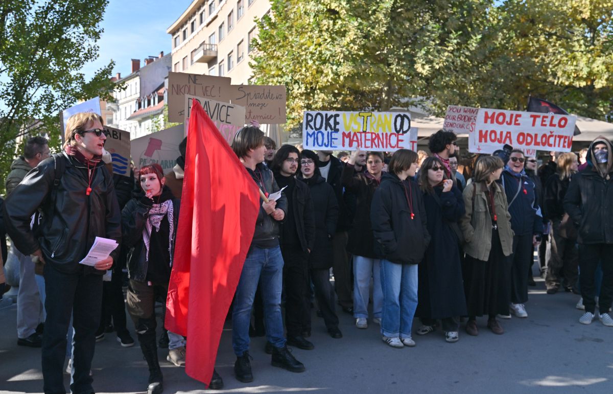 "Nedopustno se nam zdi, da se sploh preizprašuje pravico žensk do odločanja o lastnem telesu in da se sploh preizprašuje to, kar nam je že v ustavi zagotovljeno," je ob robu dogodka za STA dejala Maša Cvetežar iz društva Iskra.