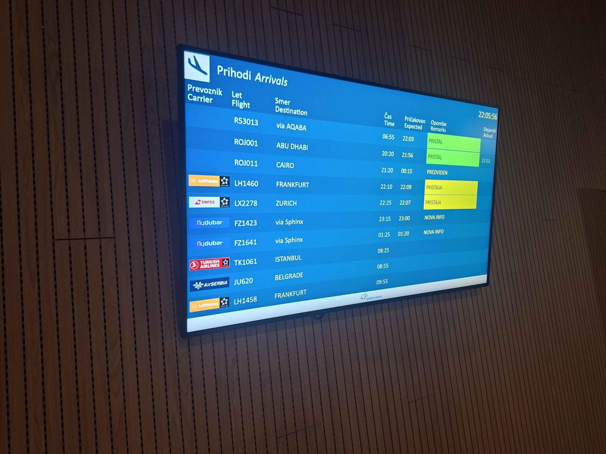 Na spletni strani ljubljanskega letališča je bil prihod letala iz Omana, ki naj bi potovalo prek Šarm el Šejka, sprva predviden ob 6.55. Ob 6. uri so napovedali, da bodo nove informacije objavili ob 10. uri, nato ob 11. uri, zdaj pa naj bi bile nove informacije o prihodu znane ob 15. uri.