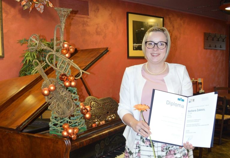Barbara Zakocs z Gornjega Senika se je še kot dijakinja monoštrske gimnazije udeležila intenzivnega jezikovnega tečaja slovenščine v Ljubljani in tam spoznala Mihaelo Knez, vodjo programa slovenščina za otroke in mladostnike pri Centru za slovenščino kot drugi in tuji jezik. Knezova je močno vplivala na to, da se je Zakocseva začela zanimati za učenje slovenščine in da se je odločila tudi za študij slovenščine in madžarščine na Filozofski fakulteti Univerze v Mariboru. Letos je kot študentka slovenistike prejela Miklošičevo priznanje za magistrsko delo, ki ga vsako leto ob dnevu fakultete podelijo najboljšim magistrskim nalogam na posameznih študijskih smereh. »Zelo sem vesela, saj sem vložila veliko truda v to delo. Hvaležna sem tudi mentorici Mihaeli Koletnik, ki mi je s svojim znanjem pomagala pri nastajanju naloge,« je povedala magistrica.