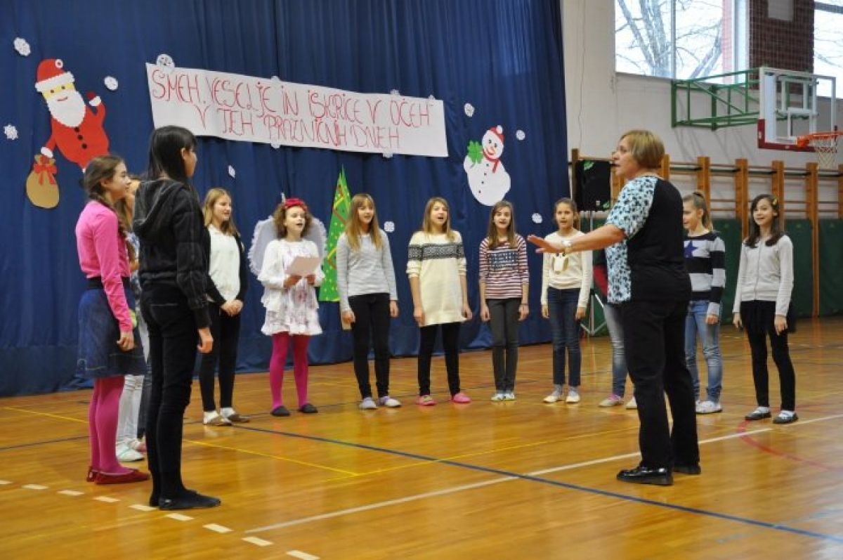 V šolski telovadnici so se poleg učencev in delavcev šole prireditve udeležili predstavniki sveta šole in staršev, upokojeni šmihelski učitelji, starši ter drugi gostje. Prireditev je zasnovala učiteljica Katja Kapele. Začeli smo jo slovesno s slovensko in šolsko himno, ki sta ju zapeli mladinski pevski zbor pod vodstvom učiteljice Diane Dronjak. Programsko nit prireditve sta povezovala Iva in Luka v vlogi vile in škrata. Božiček je rabil pomoč, ker so bili njegovi škratje preveč zasedeni. Zanimalo ga je, kako otroci preživljajo praznični čas, zato sta se dobra vila in škrat odpravila k šmihelskim otrokom in povprašala, kaj počnejo v tem božičnem času, kaj jim ta čas pomeni, kakšne so njihove želje in da jim o praznikih povesta kaj novega. Matevž je povedal, da piše pismo Božičku, Laura posluša božične pesmi, Tinkara izdeluje novoletne čestitke za prijatelje, nekaj jih je izdelala tudi za novoletno tržnico, ki so jo imeli v šoli. Škrat in vila sta ugotovila, da so otroci v prijetnem prazničnem vzdušju, da so ustvarjalni in navdušeni nad vsem, kar prinaša ta čas. Povedala sta, od kod prihajata ter spregovorila tudi o darilih. V zanimivem in bogatem kulturnem programu so se predstavili otroški pevski zbor pod vodstvom učiteljice Klavdije Hrastar, mažoretka Maja, Lev s trobento, Nia s kitaro, Vid s plesno točko, recitatorka Hana, Tilen s harmoniko in šolski band. Vila je povedala, da se vilinci skrivajo tudi na Gorjancih, kot je že zapisal dolenjski pisatelj Janez Trdina.