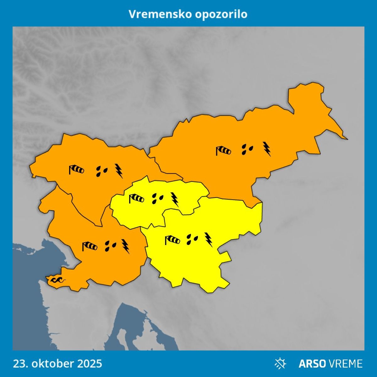Močan veter, nalivi in razlivanja rek: Arso izdal oranžno opozorilo za jugozahod in severovzhod države.