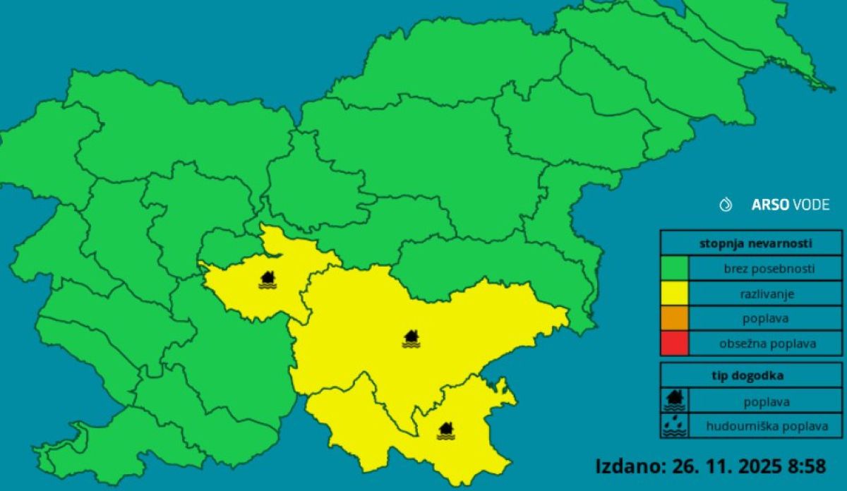 Razlivata se še Kolpa v spodnjem toku ter Ljubljanica na Barju