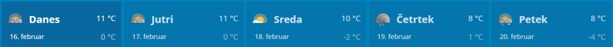 Dan pa bo prinesel skoraj spomladanske razmere: najvišje dnevne temperature bodo znašale od 7 do 12 stopinj, na Goriškem pa se bo ozračje ogrelo celo do 15 stopinj Celzija.