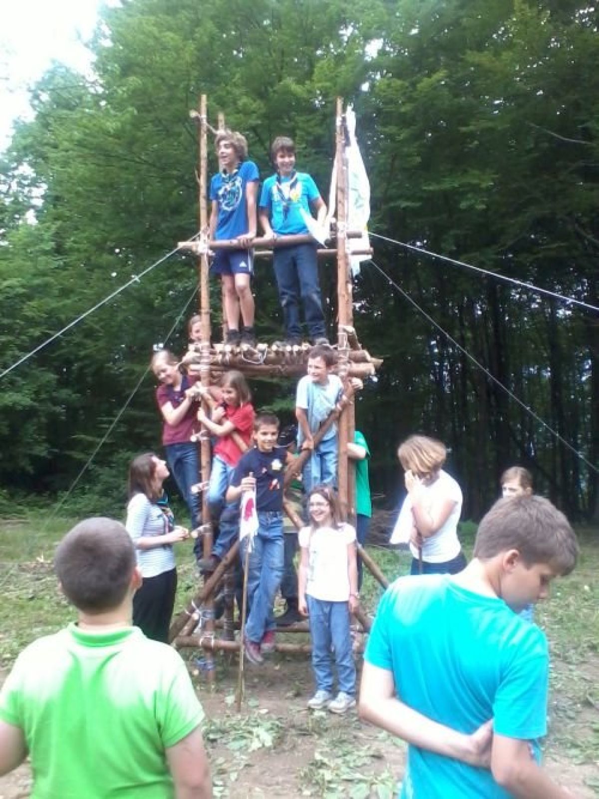 Gorjanski medvedje so s tekmovanjem v postavljanju lesenih tabornih zgradb in z blagoslovom novega šotora zaključili skavtsko leto.
