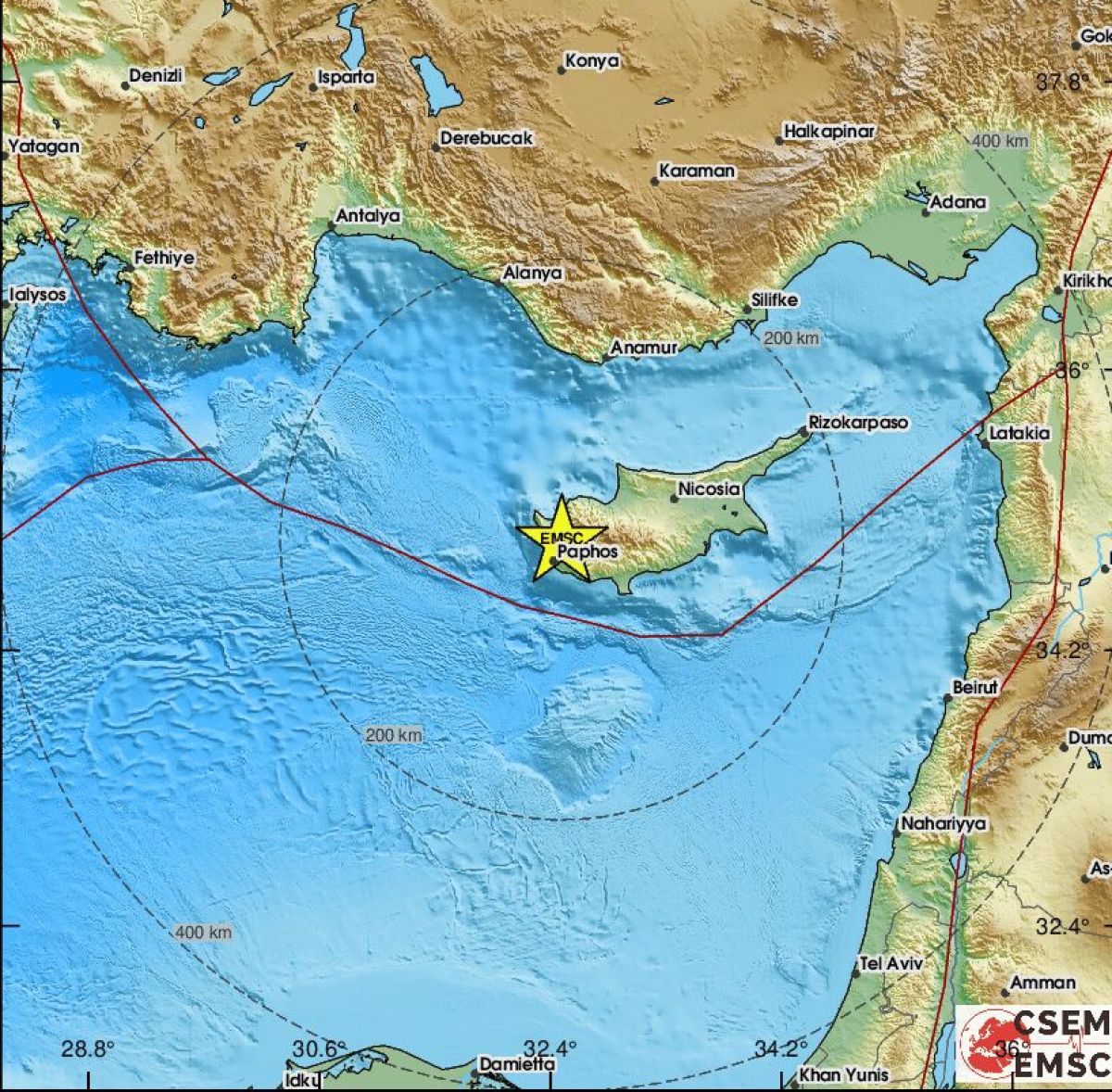 Žarišče potresa je bilo približno 20 kilometrov severovzhodno od mesta Pafos, ki se nahaja na skrajnem zahodu Cipra. Po poročanju ciprskega geološkega urada so morali na območju zaradi potresa evakuirati več zgradb. Na srečo poročil o večji škodi ni.