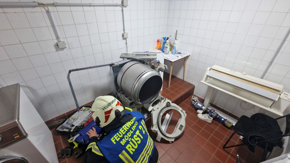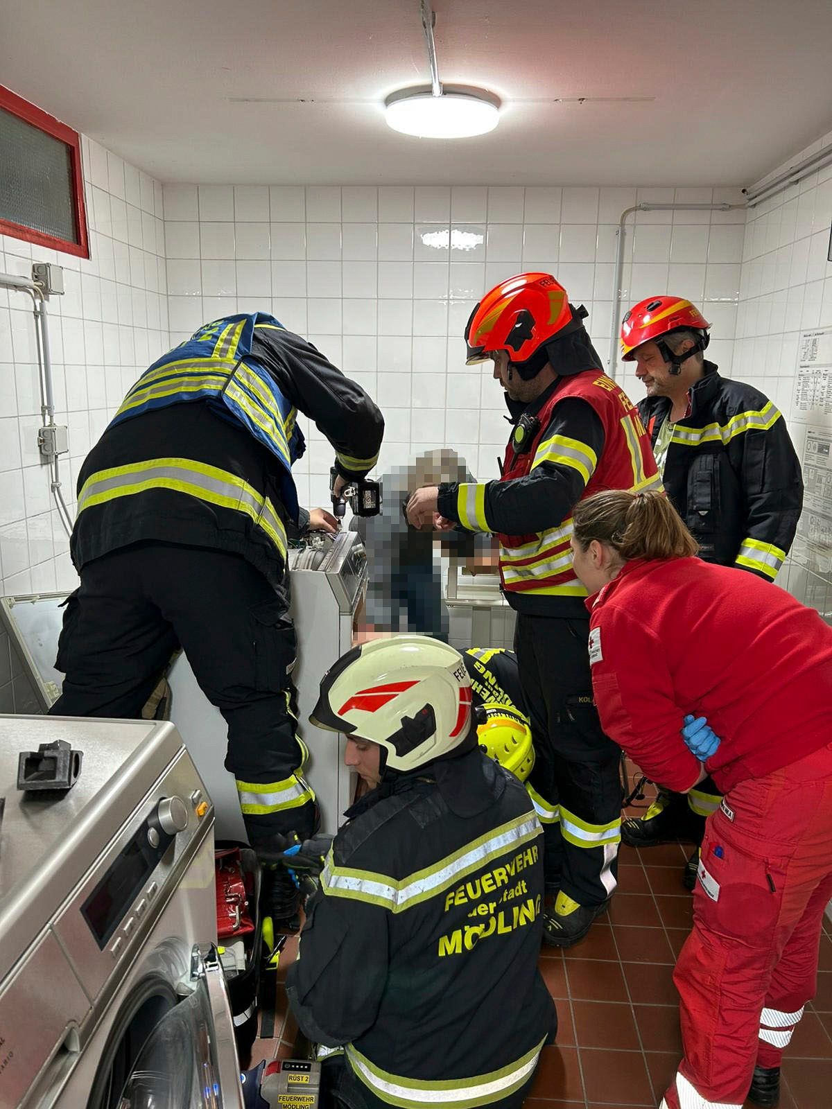 V kraju Mödling v predmestju Dunaja so gasilci danes iz sušilnega stroja rešili 13-letnico, ki je splezala v boben in se tam zagozdila.