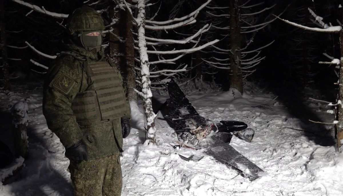 Videoposnetek, posnet ponoči, prikazuje poškodovan dron, ki leži v snegu sredi gozda. Rusko ministrstvo je ob tem navedlo, da je bil domnevni napad ciljno usmerjen, skrbno načrtovan in izveden v več fazah.