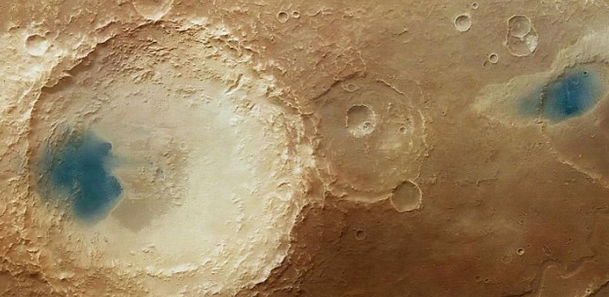 Vetrovi, ki pihajo po površju Marsa, tega sčasoma preoblikujejo, obenem pa celem planetu raznašajo temen, vulkanski prah. Ko se tega dovolj nakopiči v katerem od kraterjev, se na fotografijah zdi kot modra zaplata vode.