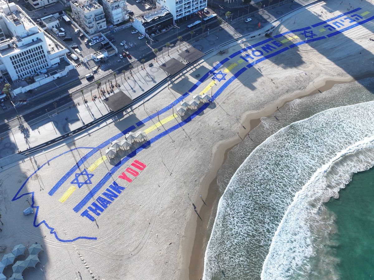 Pred tem je zrakoplov zakrožil nad znakom z zahvalo, ki so ga izraelski aktivisti izpisali na plaži prestolnice.