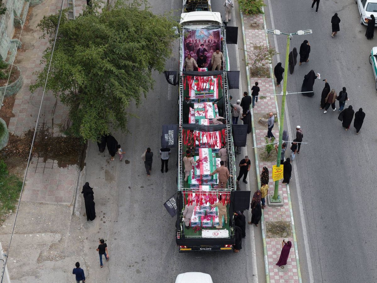 Iranska državna televizija je prikazala na tisoče žalujočih, ki so napolnili trg mesta, v katerem se je nahajala šola. Množica naj bi vzklikala »Smrt Ameriki«, »Smrt Izraelu« in »Ni predaje«.