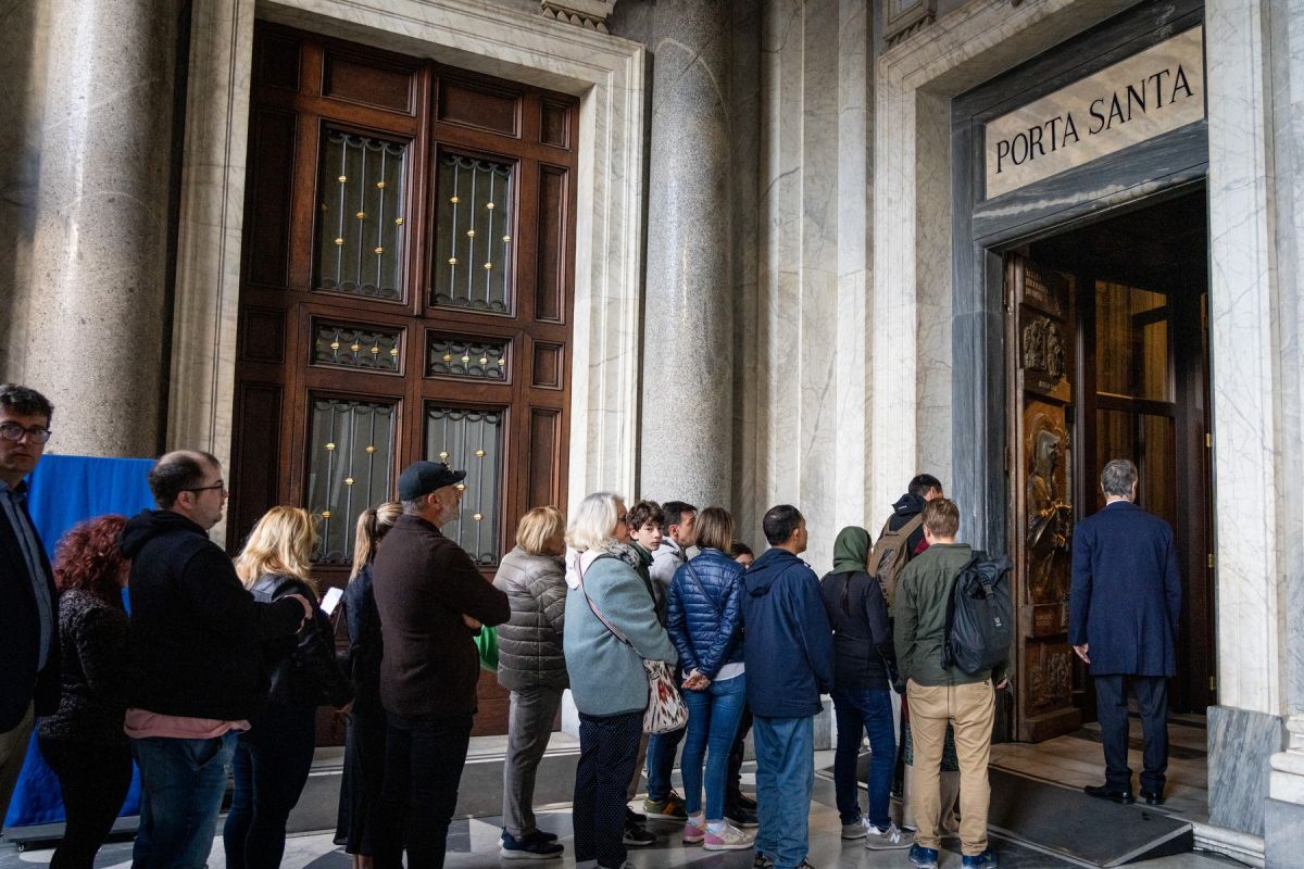 V baziliki Marije Snežne, kjer so včeraj pokopali papeža Frančiška, se na od njega na grobu poslavljajo prvi verniki.