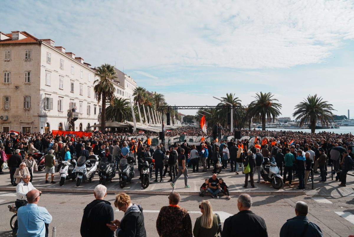 Danes ob 11. uri se je na splitski Rivi začel protest, ki ga je napovedala navijaška skupina Torcida, dogodek pa je odobril mestni urad. Povod za zbor je aretacija devetih oseb, ki so po podatkih hrvaške policije sodelovale v incidentu med prireditvijo ob Dnevu srbske kulture v Splitu. Dogodek je bil prekinjen, ko je skupina moških vdrla v prostore, kjer se je prireditev odvijala, poroča Jutranji list.