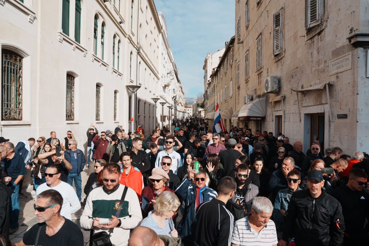 Govor je odprl Zoran Vrbatović, športni novinar in pripadnik 114. brigade Hrvaške vojske. "Mediji bodo zdaj šteli, koliko nas je," je dejal, medtem ko je množica vzklikala in ploskala. Po ocenah novinarjev se je zbralo približno dva tisoč ljudi.