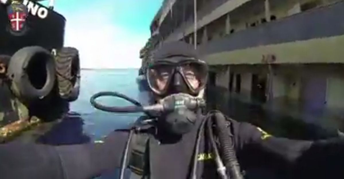 Italijanska policija je objavila posnetke, na katerih si lahko ogledate notranjost potopljene luksuzne ladje.