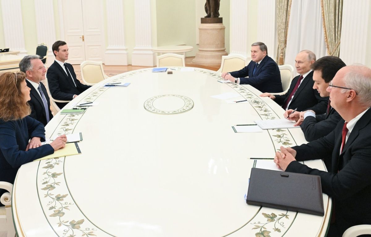 Na eni strani mize sedi ameriška delegacija, tam sta glavna Witkoff in Kushner, na drugi je nedvomno prvi po pomembnosti Putin, ob njem pa sedita Dmitrijev in svetovalec za zunanjo politiko Jurij Ušakov. Na začetku so si ruski in ameriški predstavniki izmenjali vljudnostne pozdrave, malce poklepatali o vremenu in vzdušju v Moskvi, Witkoff pa je dejal, da je »Moskva res čudovito mesto«, za kar se mu je Putin zahvalil.