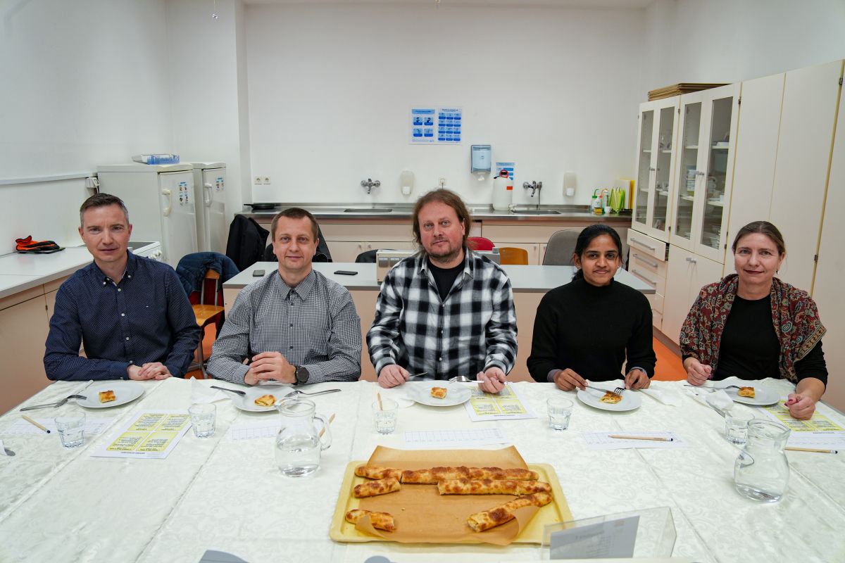 Pred dnevi smo šli napredek preverit v BIC Ljubljana, kjer smo skupaj s predstavnikoma Pekarne Pečjak - direktorjem Silvom Pečjakom in glavnim tehnologom Sebastjanom Filipom med osmimi vzorci, ki so jih razvile različne skupine dijakov, izbrali najprimernejšega oziroma najbolj obetavnega za prodajni uspeh. Poleg predstavnikov Pekarne Pečjak smo izborno žirijo sestavljali še predstavnica BIC Ljubljana, neodvisna zunanja ocenjevalka ter podpisani kot predstavnik revije Dober tek.