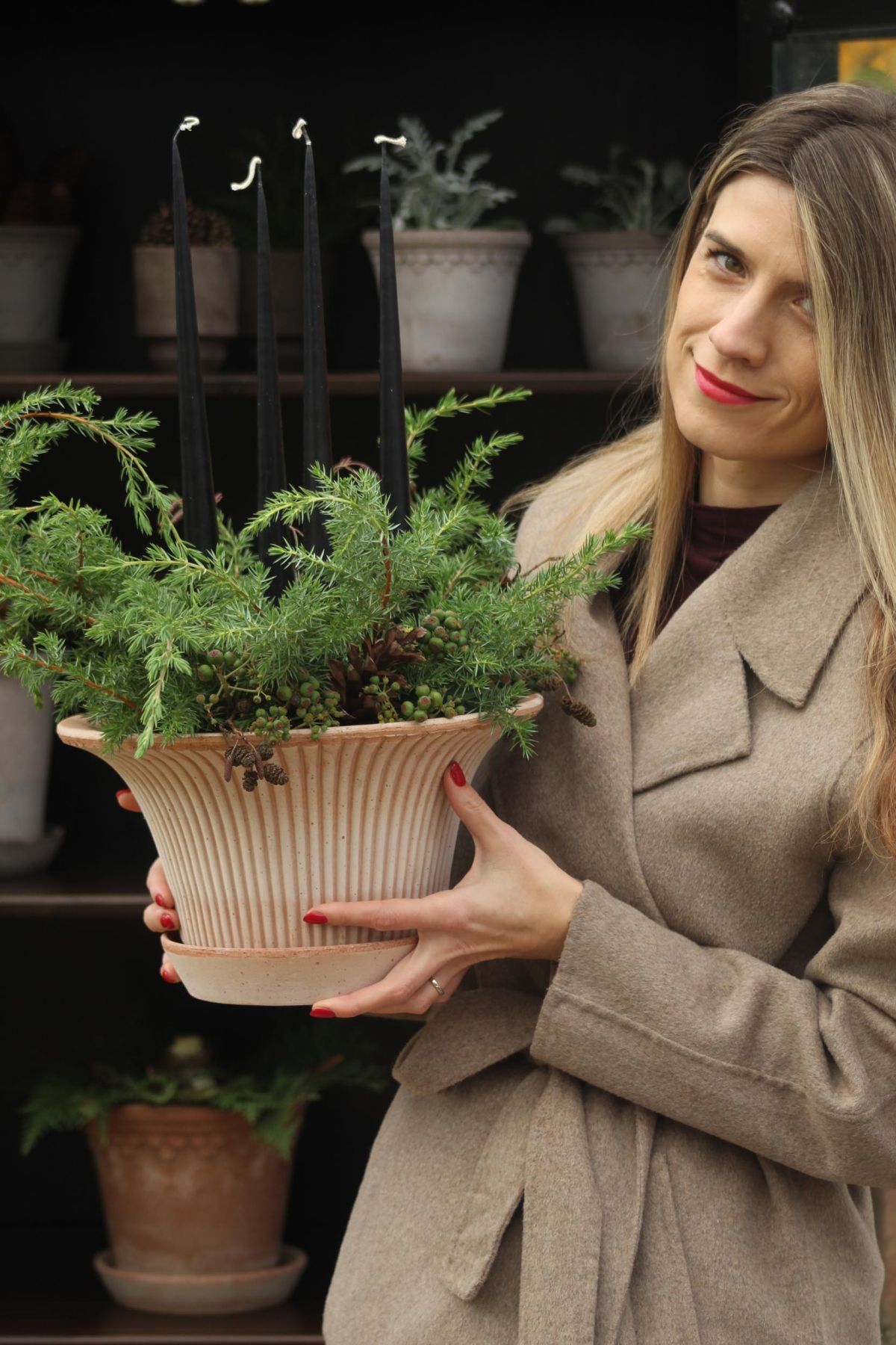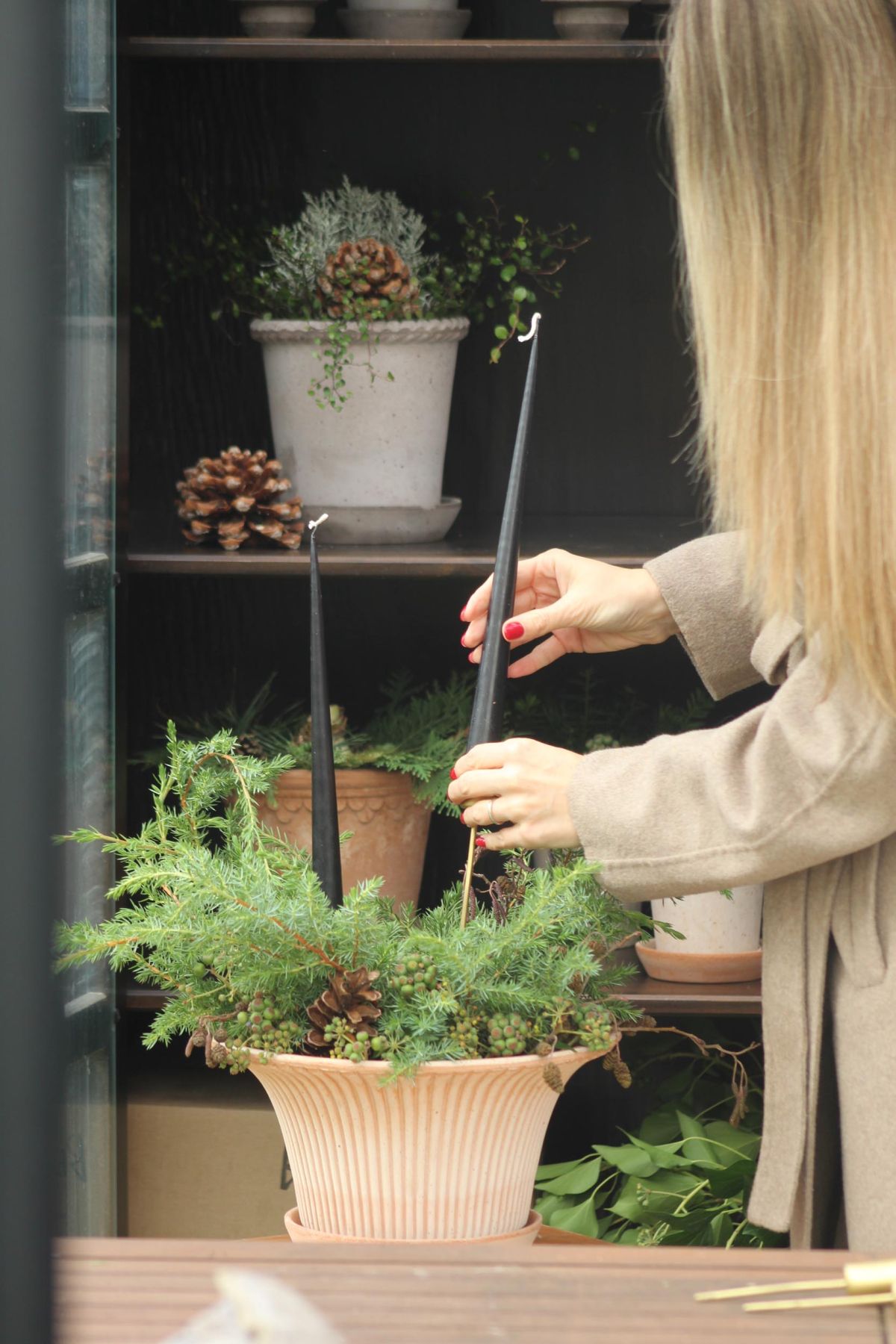Adventni venček lahko ustvarimo kar iz manjše sadike iglavca v loncu – hitra, sveža in drugačna ideja za prvo adventno nedeljo!