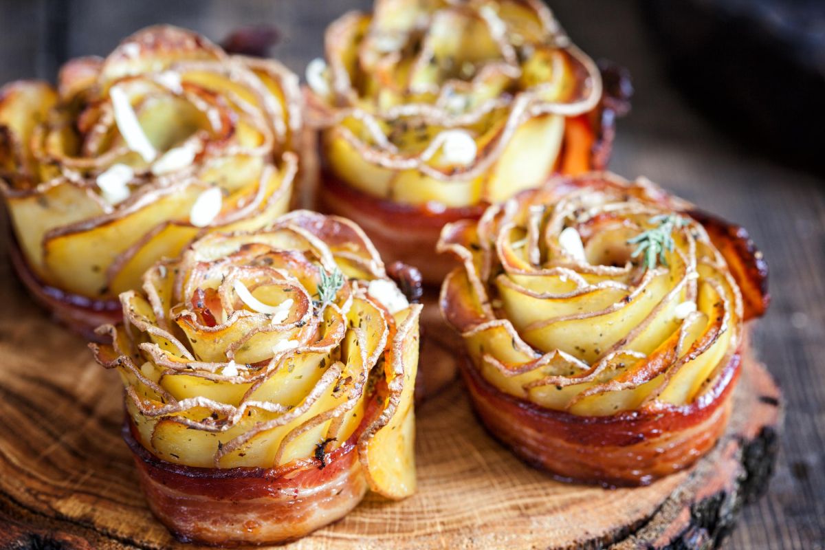 Pečen krompir lahko zasije tudi praznično: pripravite ga kot čudovite krompirjeve vrtnice. Preprosto, dekorativno in popolno za vsako slavnostno mizo.