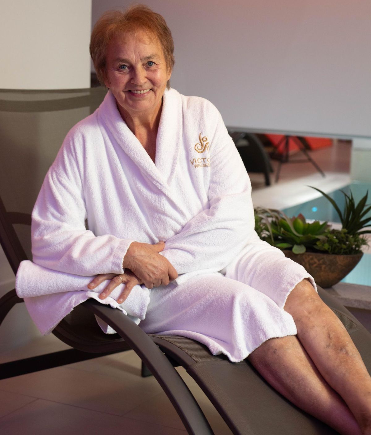 Ob vstopu v mehko osvetljen prostor sva se z Ani potopili v prijetno vzdušje. Ob nežni glasbi in prijetnem vonju po zeliščih so naju posedli v zimskem vrtu ter nama postregli s kavo in maslenimi rogljički. Z Aninega obraza je vidno izginjala napetost, vodji velnesa Nuša in Natalija Zajc sta bili sila prijetni in kmalu smo čebljale o vsem mogočem. Ko je pri vratih pozvonil fotograf Šimen, je bil čas za nekaj posnetkov in Ani se  je kljub začetni zadržanosti odlično znašla – odeta v kopalni plašč se je kmalu smehljala pred fotografskim objektivom. Je to prvo profesionalno fotografiranje? »To pa res,« je pokimala in se zahihitala. Pa potem? Razvajanje, razvajanje in še enkrat razvajanje!