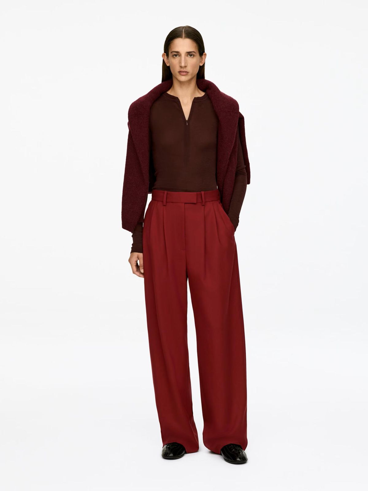 Ko osvojite nevtralne tone, poskusite še s temnejšimi ali izrazitejšimi barvami – bordo, gozdno zeleno ali kraljevsko modro. Prav v barvah monokromatski videz pokaže svoj čar: mehkejši je, bolj nosljiv in izjemno eleganten.