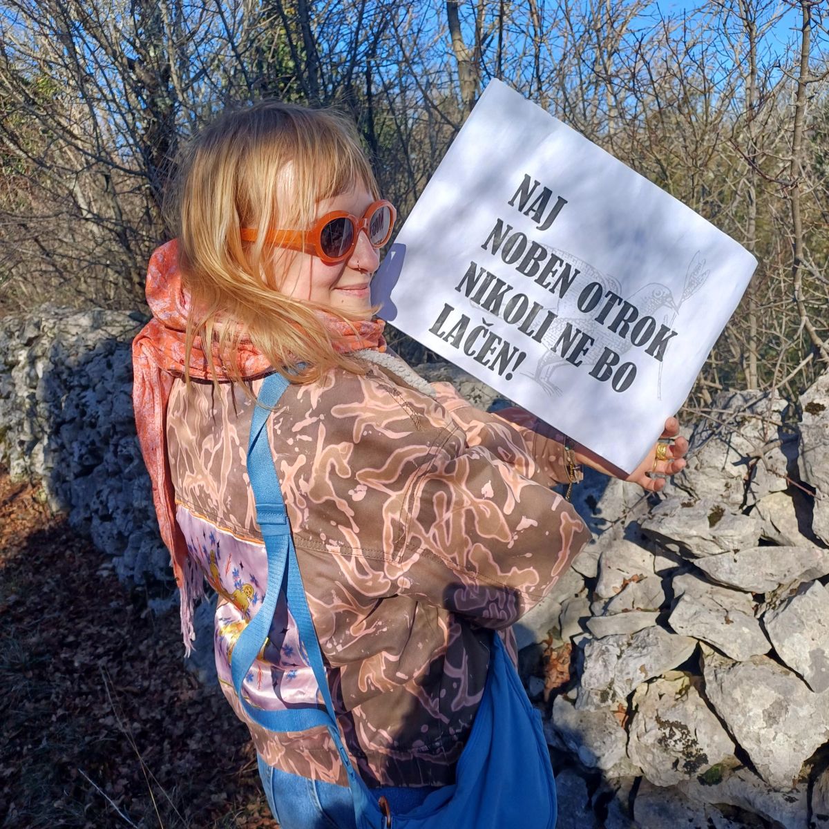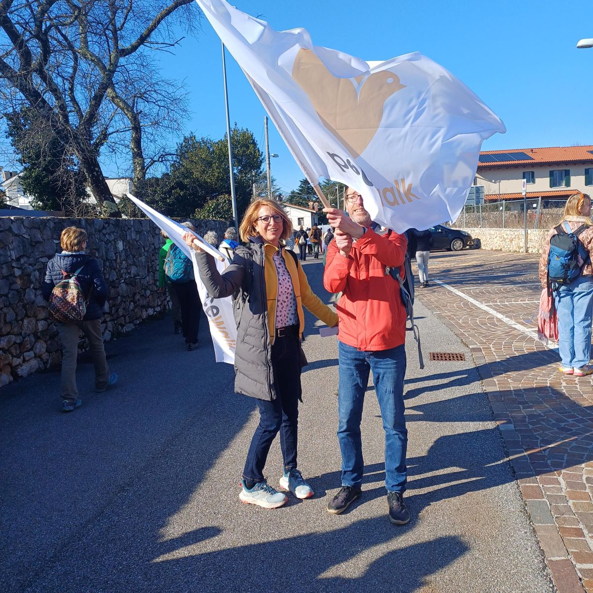 V soboto zadnjega januarja sem opazila, da gre mimo naše kraške vasi množica ljudi. Nekateri so okoli sebe ovili zastave z napisom Walk for Peace. Nekateri so v rokah nosili bele zastave z narisano ptico. Opazila sem sosedo, pomahala mi je in me vabila, naj se jim pridružim. V hišo sem skočila po dodatna oblačila, si napolnila žepe z mandlji in že sem bila med njimi.