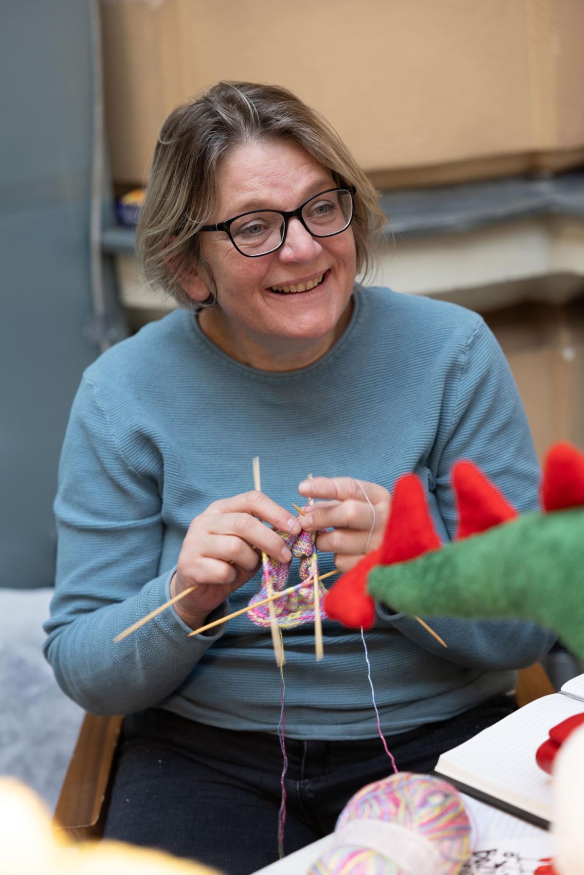 Bili so lončki, lončkov in skodelic je bilo na sejmu največ, pa vazice za eno rožico, tako iz gline, ki je bila tudi naprodaj, ampak pred stojnico Kristine Matičič sem obstala zaradi dveh stvari: njenega širokega nasmeha in posodice z luknjo pri strani. In v posodici klobčič volne, ki je pojasnil namen: da lahko pletilje in kvačkarice skozi luknjo vlečejo nit, ne da bi jim volna divjala okrog. Kristina je »po poklicu zobozdravnica, orientirana v biološko zobozdravstvo«, kot piše na njeni spletni strani, predvsem pa je že od mladih nog zaljubljena v glino.