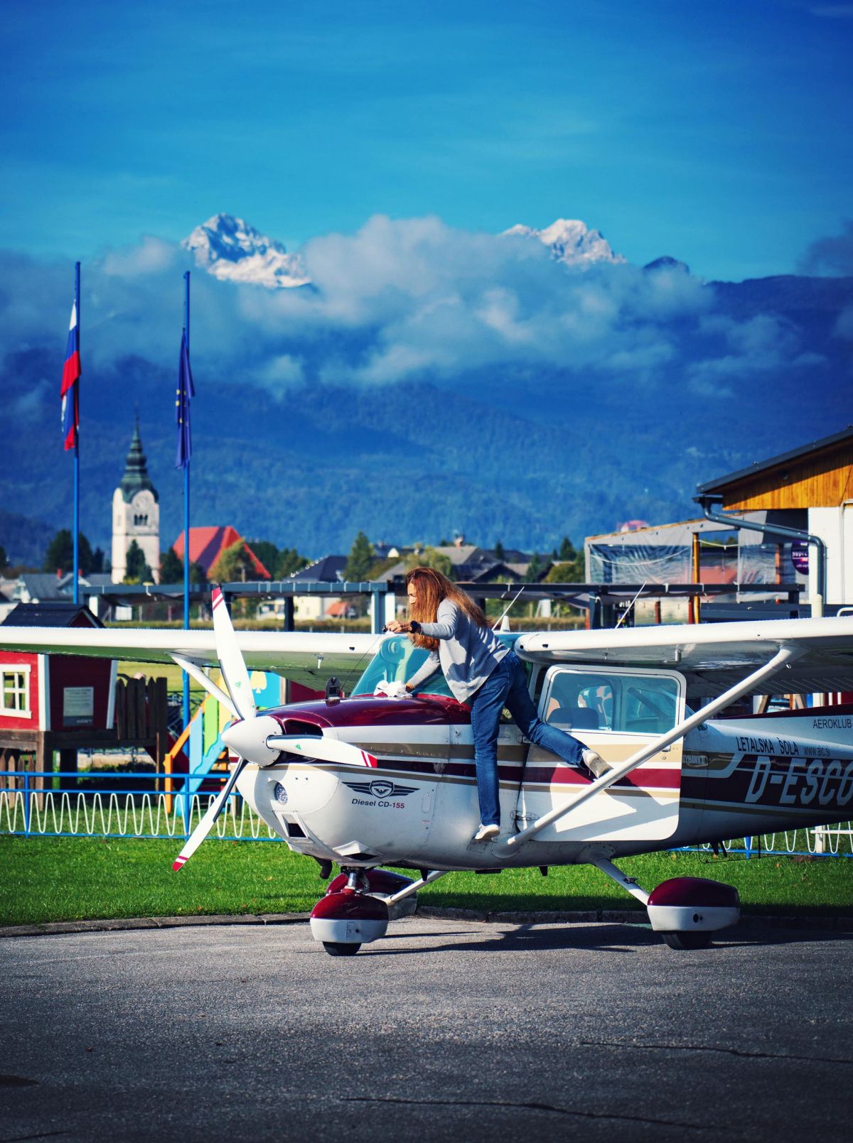 Napovedovali so sončno jesensko soboto, a se je nad letališčem v Lescah dvigala gosta sivina. Bomo kljub temu leteli? Ob pogledu na majhna letala na trati sem debelo pogoltnila in se pogreznila v mehko jopico, nato pa se raje posvetila druščini pilotk, ki so me čakale pred hangarjem. Morda pa je njihova dobra volja pregnala oblake, čez slabo uro se je namreč zjasnilo in postreglo s prekrasno kuliso Julijskih Alp v daljavi, ki so svoje sivo-bele vrhove potapljale v prostrano modrino.