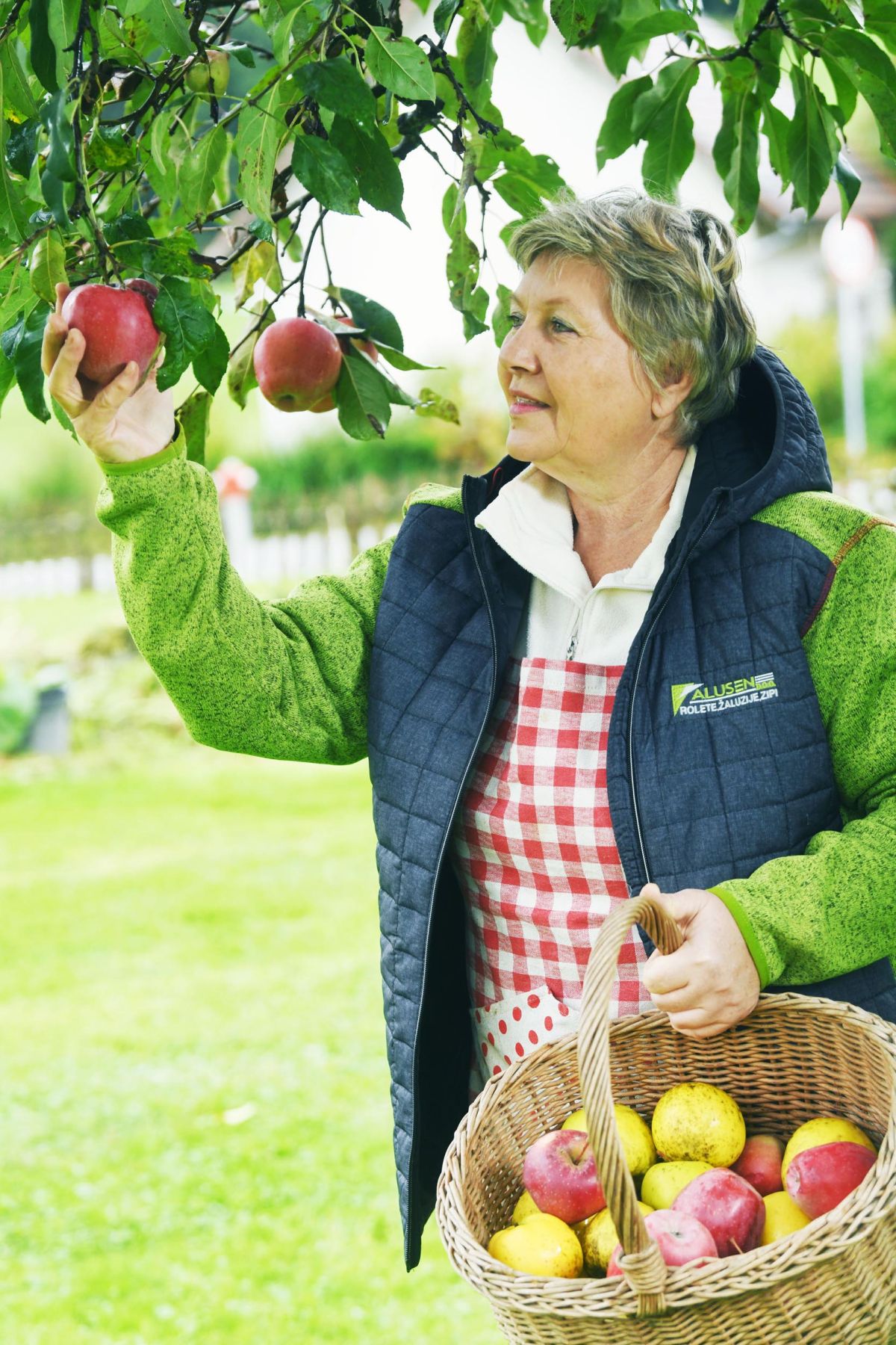 Sonja nas pričaka v rdečem kockastem predpasniku, okoli nog se ji smukata kokoška in ljubezniva psička Stela. »Sin mi jo je pripeljal, saj se je moj zvesti kuža Bos poslovil. 14 let je bil star, gluh in bolan. Povsod mi je bil za petami, zelo ga pogrešam,« se ji zlomi glas, a se ob pogledu na kosmatinko hitro zbere in nas povabi k hiši. Ob domačem ognjišču je toplo, na kmečkem štedilniku brbota omamna obara, kuhinjo pa napolnjuje tudi sladek vonj po jabolčnem zavitku. Čeravno mora živeti skromno, nas pogosti z dobrotami, ki nahranijo ne le želodec, temveč tudi dušo. »Jaz bom kar tukaj ostala, nikamor ne grem!« se navdušuje fotografinja Mateja, ki s Sonjo že kuje načrte za delovni obisk. Nič nenavadnega, na tem koščku zemlje se človek preprosto počuti sproščeno in domače.