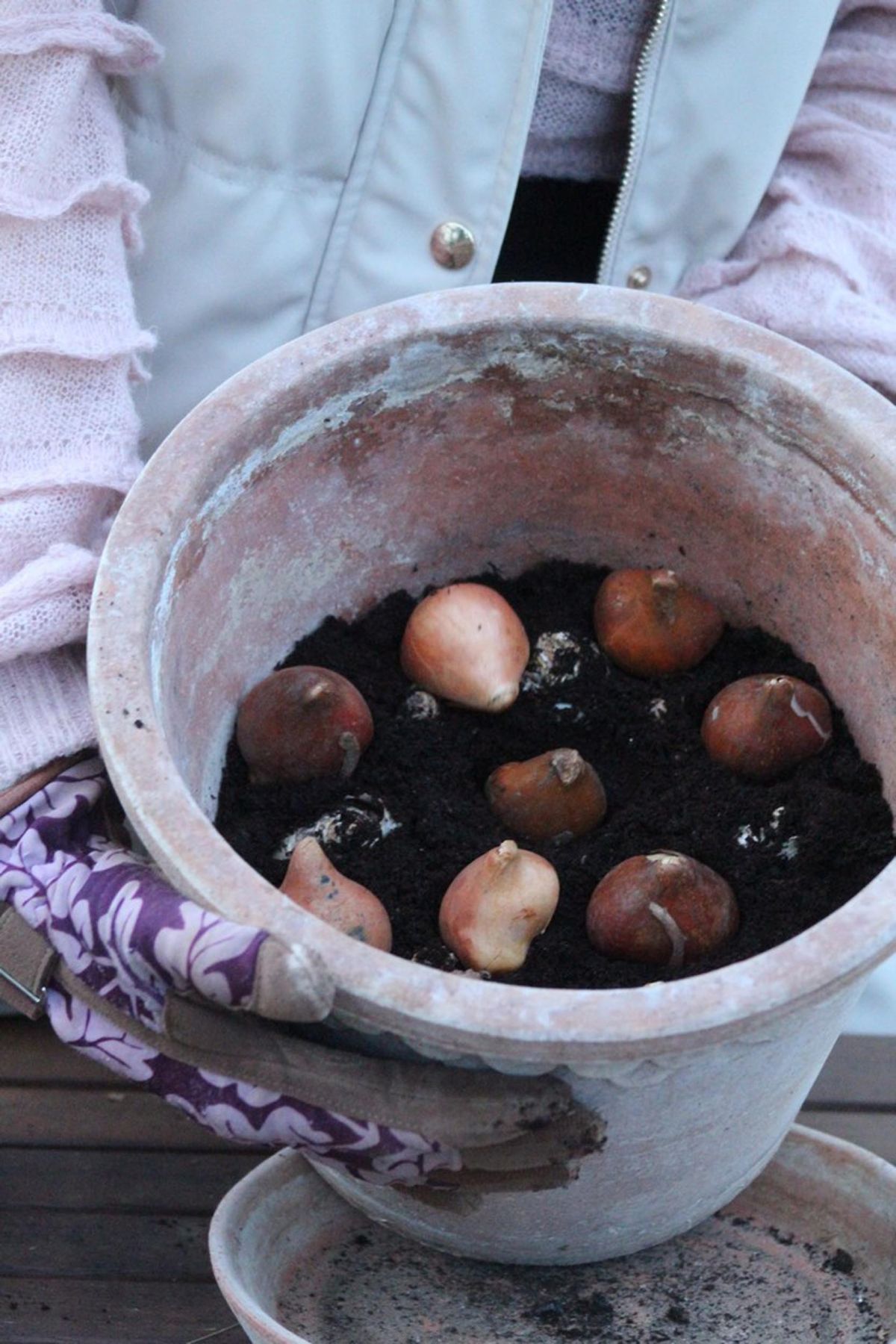 Po končani saditvi napolnjen cvetlični lonec izdatno zalijemo, lonec pokrijemo (uporabimo pokrov, podstavek, leseno desko …) ter ga postavimo v zavetje do začetka pomladi.
