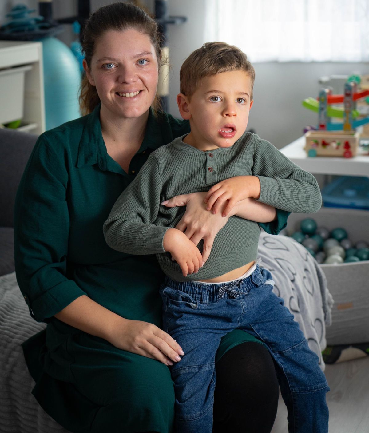 To se je vleklo mesec in pol, potem sem pa zahtevala napotnico za razvojno ambulanto. Ampak tam je čakalna doba in sem ga vmes naročila pri zasebni nevrofizioterapevtki. Šele v tej zasebni ambulanti smo dobili prve informacije, da je hipoton, ima ohlapne sklepe, kar pomeni, da potrebuje večjo mišično moč. Povedali so nam, da bomo morali trdo delati in bo potrebnih veliko fizioterapij, da bo shodil. Tu se je začela prva negotovost, čeprav se nam še niti približno ni sanjalo, v katero smer gremo. Mislili smo, da bomo dve leti hodili na fizioterapije, ko bo shodil, pa na dva do tri mesece, da ga spremljajo, in to bo to.« A ni bilo.