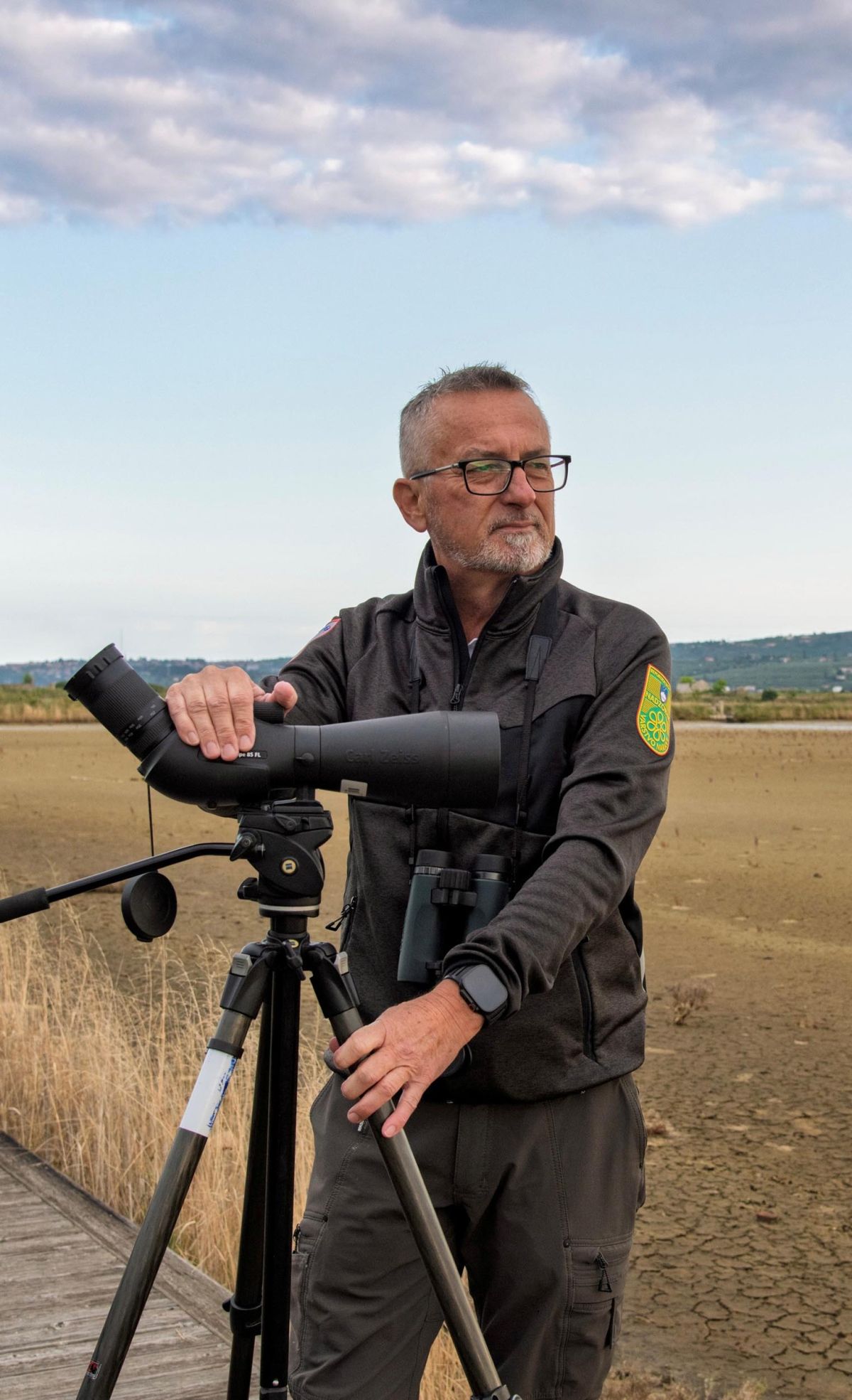 »V zadnjih petdesetih letih smo v Sečoveljskih solinah zabeležili 310 vrst ptic. Od teh jih približno 80 vrst redno domuje tu vse leto, bodisi gnezdijo, prezimujejo ali so naši stalni prebivalci. Vse druge pa so selivke, popotniki, ki se ustavijo pri nas le za kratek čas, da si odpočijejo krila, se nahranijo, nato pa nadaljujejo svojo dolgo pot. Zanje so soline kot majhno počivališče ob veliki nebeški avtocesti,« pojasnjuje Iztok Škornik, ornitolog in naravovarstvenik, ki že več kot štiri desetletja spremlja ptice, več kot 20 let pa je zaposlen v Krajinskem parku Sečoveljske soline – najprej je bil strokovni sodelavec, zadnje desetletje pa je vodja naravovarstvene nadzorne službe.