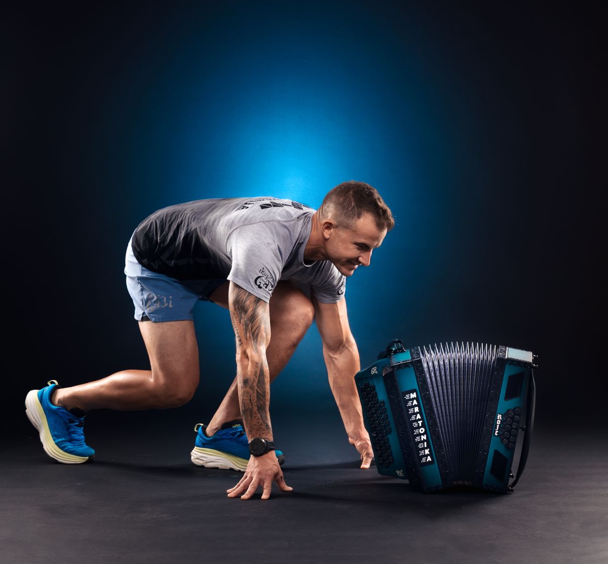 Tudi ideja za ime je nastala na maratonu v Pragi. Maratonika je model harmonike, ki bo prilagojena za moj tek na Ljubljanskem maratonu. S Petrom Vidmarjem (harmonike Rojc) sva poskušala prilagoditi harmoniko tako, da bo čim bolj prilagojena na telo in fiksirana na način, ki bo preprečil njene poskoke ob teku. Potrebujemo še nekaj zadnjih prilagoditev, ki jih moramo spremeniti zaradi pravil Guinnessove knjige rekordov, in mislim, da bomo pripravljeni do te mere, da bo tek s harmoniko v užitek.