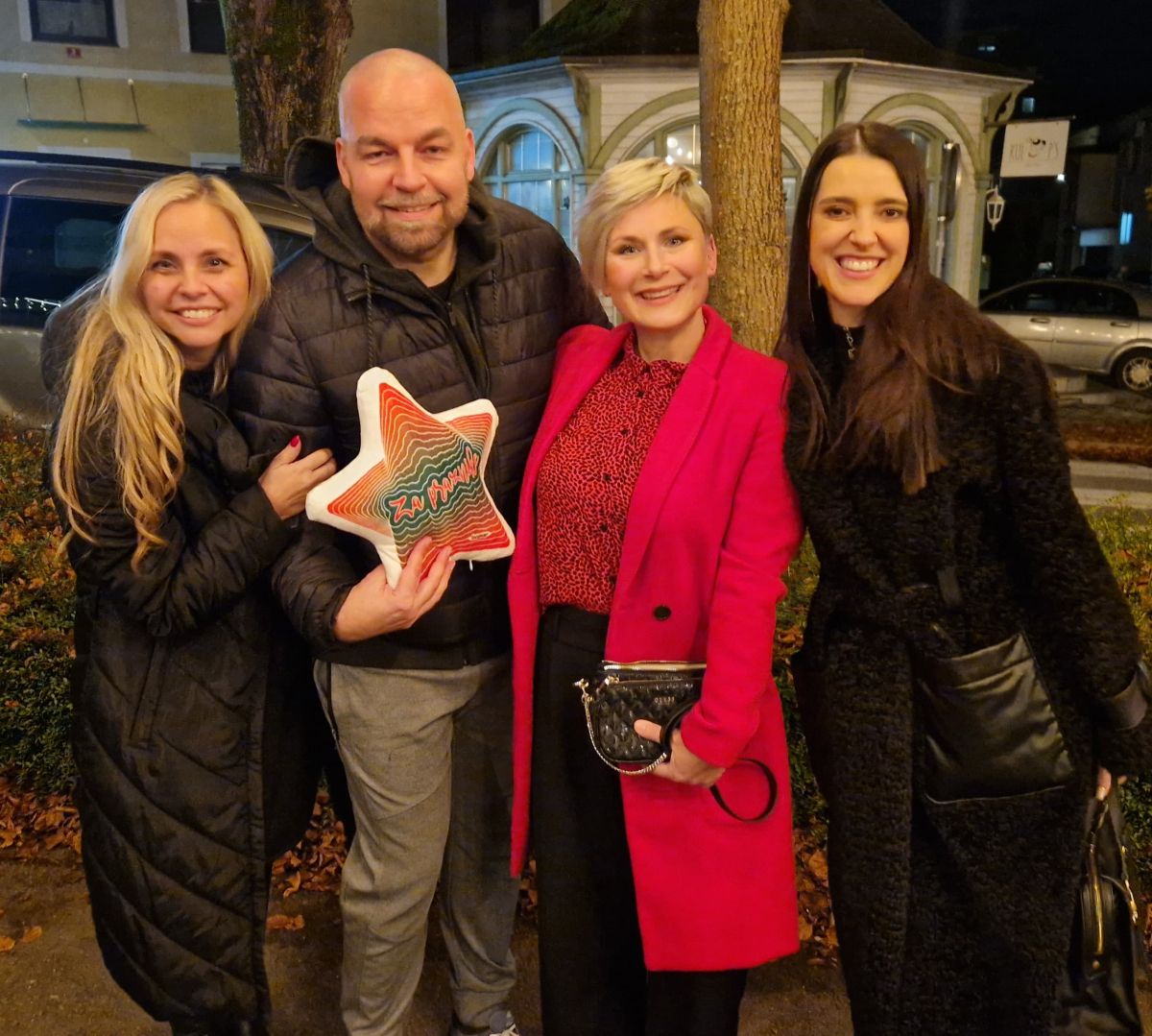 Pevke skupine Bepop Ana Praznik, Tinkara Fortuna in Alenka Husič so se pred kratkim mudile v Grosupljem, kjer so trenutek izkoristile tudi za srečanje z nekdanjim članom skupine Simonom Megličem. »Imele smo še nekaj časa, preden smo se odpravile na koncert, zato smo se odločile, da ga povabimo na kavo,« so povedale.