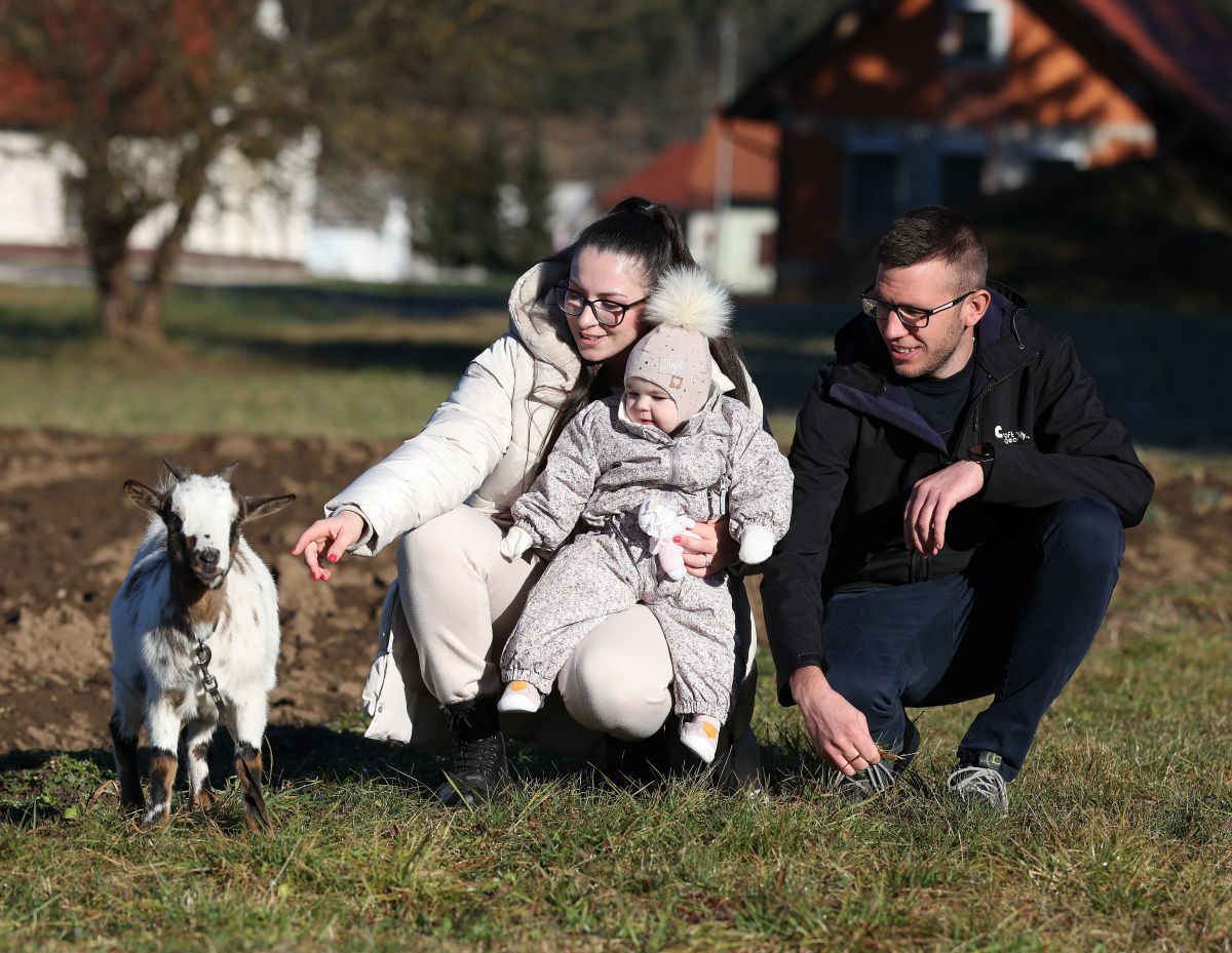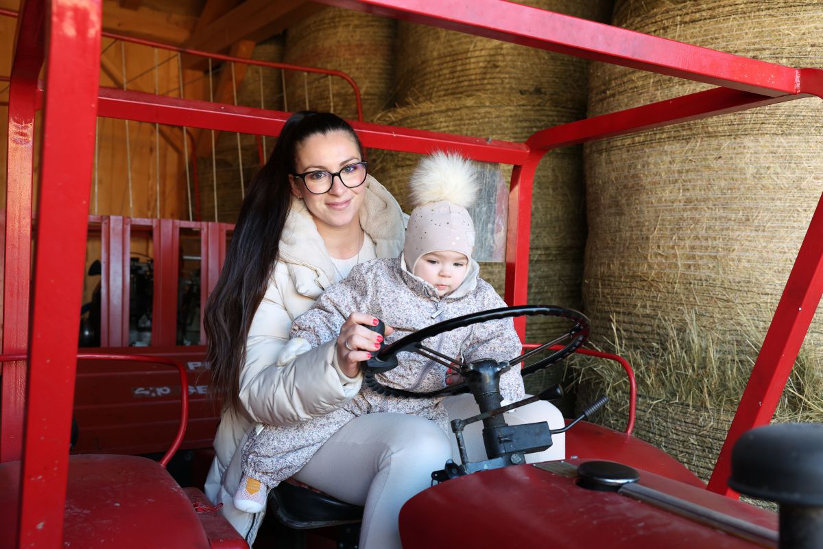Družinica se na Dejanovi kmetiji dobro počuti. »Vesela sva, da bo Hajdi odraščala v naravi in ob živalih,« pravi Patricija.