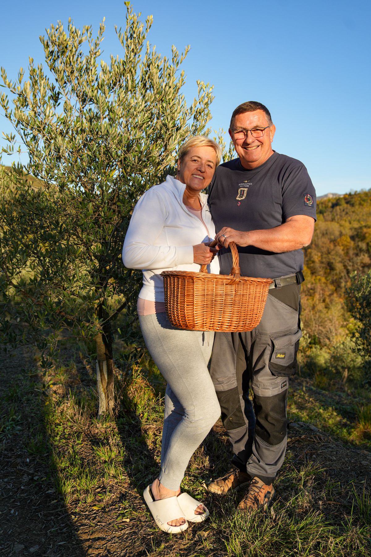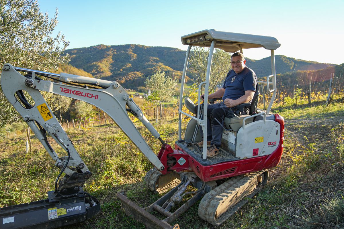 Skupaj imata tudi oljčnik s 460 drevesi. »Letos računamo na približno 70 litrov olja, ko bo nasad v polni rodnosti, upava na 700,« pravi Bojan, ki je terase uredil sam. Kot nekdanji gradbinec se pri delu zanaša na traktor, mali bager in terensko vozilo.